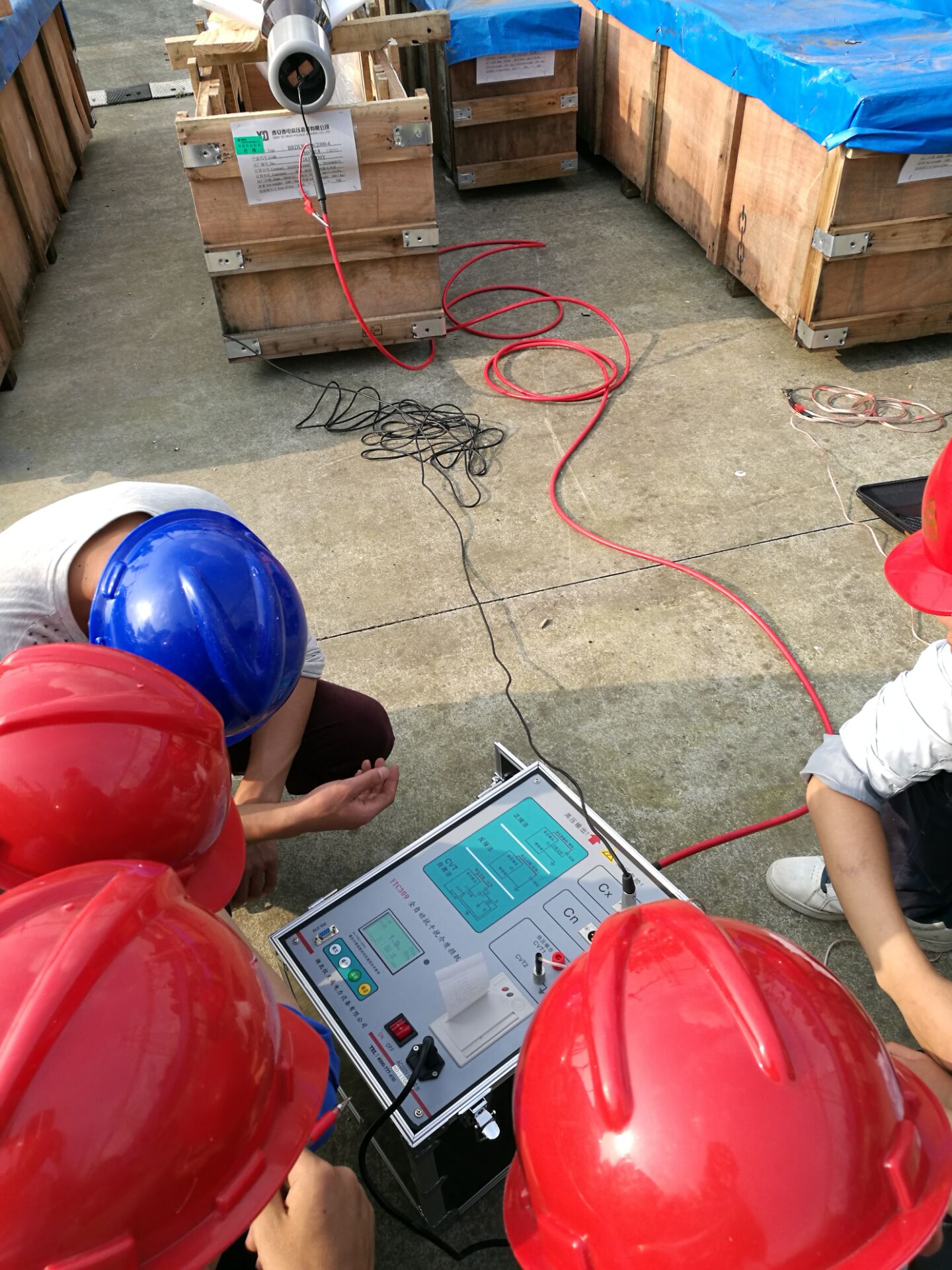 在現(xiàn)場(chǎng),李工首先對(duì)設(shè)備進(jìn)行了簡(jiǎn)單的檢查看看設(shè)備是否有損壞,之后開始了對(duì)設(shè)備的培訓(xùn)。此次培訓(xùn)的設(shè)備和內(nèi)容很多。李工對(duì)各項(xiàng)設(shè)備的使用,接線方法進(jìn)行了實(shí)地操作和詳細(xì)的講解,并對(duì)客戶提出疑問的地方,現(xiàn)場(chǎng)給予細(xì)心,準(zhǔn)確的解答。客戶理解能力比較強(qiáng),在設(shè)備培訓(xùn)過程中有的同事就已經(jīng)基本掌握了設(shè)備的操作,隨后,又與客戶一起到現(xiàn)場(chǎng)對(duì)被試品進(jìn)行了試驗(yàn)。