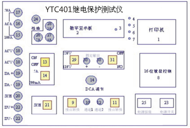 微機繼電保護測試儀是專業用于電力工作中的電力設備,是繼保工作者的好助手。儀天成電力設備有限公司的YTC401微機繼電保護測試儀正是擁有體積小,重量輕才成為了繼保工作者的首要選擇。YTC401單相繼電保護測試儀采用單片微機技術,由自動同期數字毫秒表,邏輯控制單元,多功能數顯單元,高精度數據采集及處理單元,電流、電壓輸出單元,過載及超量程保護單元等部分組成,自帶打印及顯示,測試過程全自動,大大提高測量精度及工作效率。本文就YTC401微機繼電保護測試儀的面板以及菜單詳情做以下的講解。
