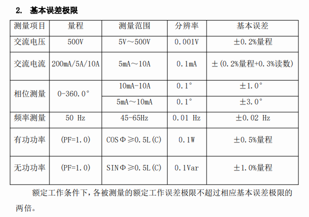 測量項目基本誤差如下: